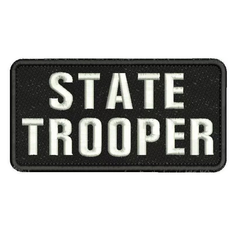 State Trooper embroidery patches 3x6 hook White letters on black