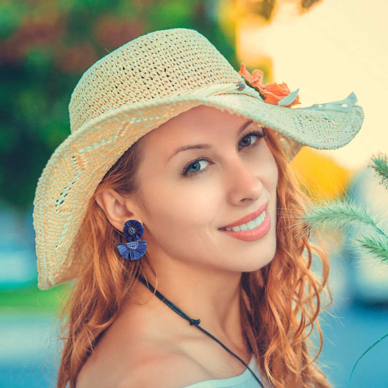 Statement Earrings Beaded Raffia Palm Bohemian Drop Dangle Earrings for women, Plastic Glass, not known
