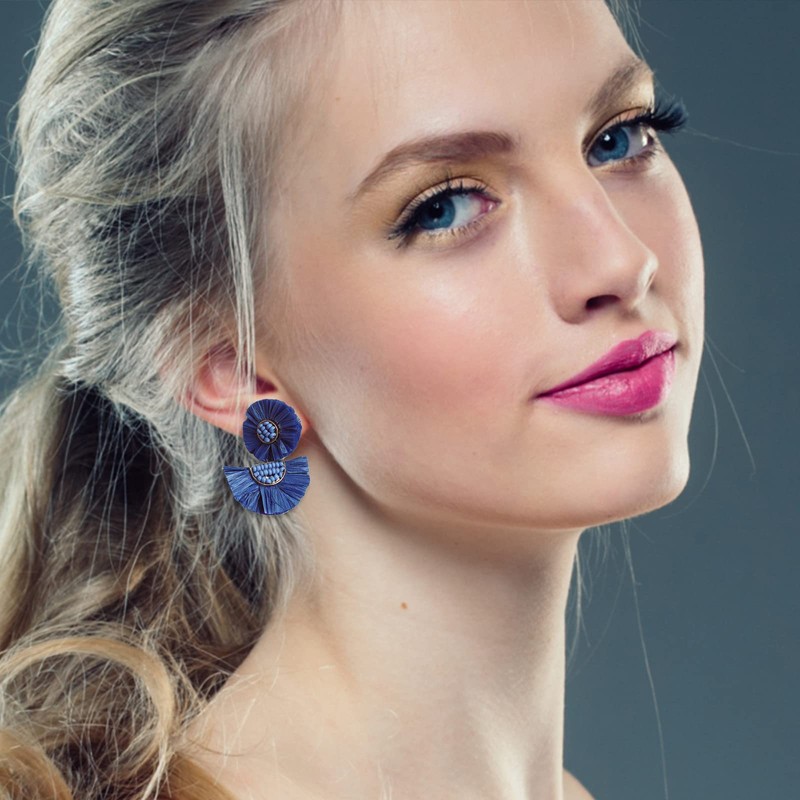 - ♥ COMPLETELY HANDMADE -- Raffia palm beaded earrings are purely handmade, it's slight different for each pair.The color is bright and the weight is light, strict quality control makes this dainty earrings