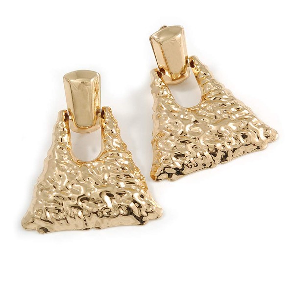 Statement Hammered Triangular Drop Clip-On Earrings/Gold Tone/ 60mm L
