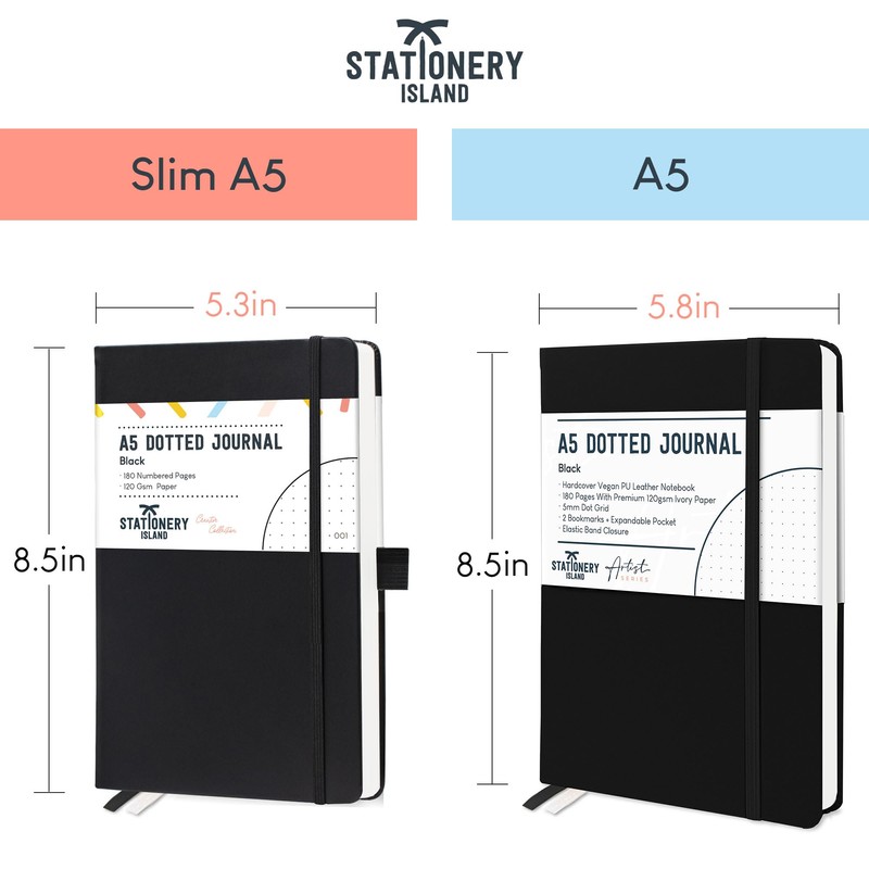 STATIONERY ISLAND A5 Bullet Dotted Journal, 180 Numbered Paged Hardcover Dotted Notebook, 120gsm Thick Paper, 5.3"x8.4" for Journaling, Study and Travel (Black)