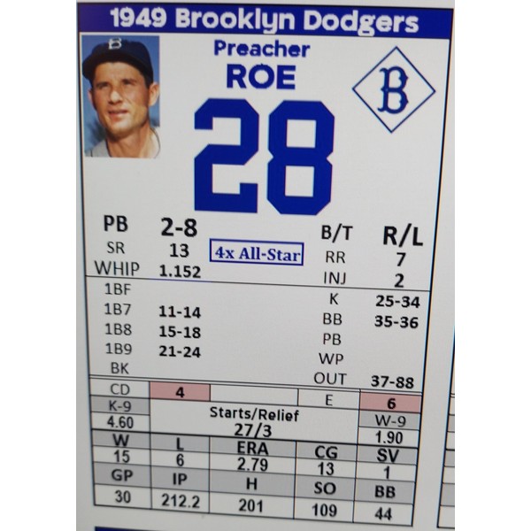 Statis Pro Baseball custom team 1949 Brooklyn Dodgers Printed and Cut!