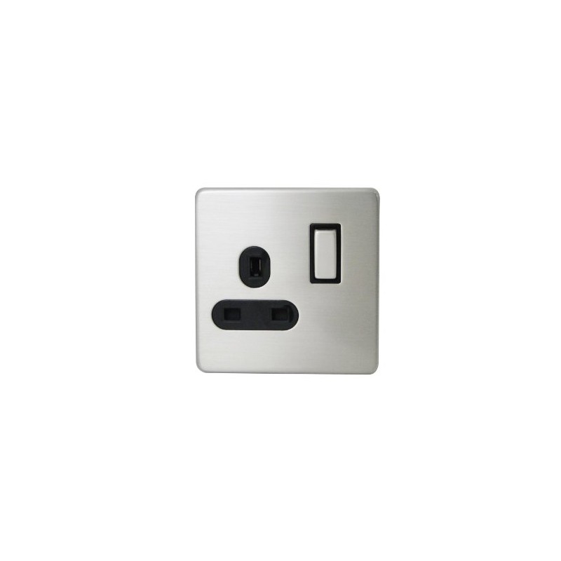 STATUS Plug Socket UK | Single Socket | Stainless Steel Flat Plate | 13A Single Switched Wall Socket | S1G13ASSWSX8