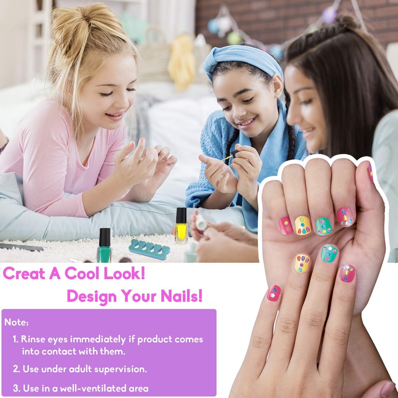 - Komplettes Nailart-Set für Mädchen: Erfüllen Sie die Bedürfnisse der kleinen Mädchen „grundlegende Nagelkunst. Mit 10 Stück Nagelkunstzubehör, wie 1 Nageltrockner, 2 Fingertrenner, 1 Nagelfeile, 1 niedlicher Aufkleberbogen usw., ist dieses Make-up-Set für Mädchen vollständig und modisch. Mit unserem Nagelkunst-Set können Kinder ihre Nägel auf diese stilvolle Art und Weise dekorieren und basteln