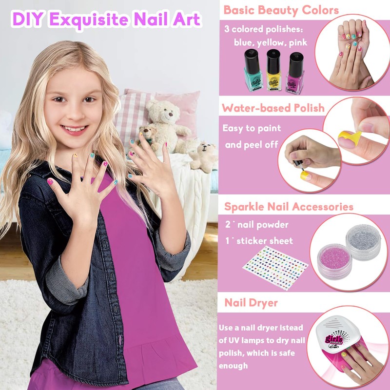 STAY GENT Nagelset für Kinder Mädchen, Kinder Nagellack Set mit Nageltrockner 10 Stück Echt Nagelstudio für Mädchen Geburtstag für Prinzessin Alter 4 5 6 7 8 9 11 12+ Nägel Glam Salon Verrückt Mädchen