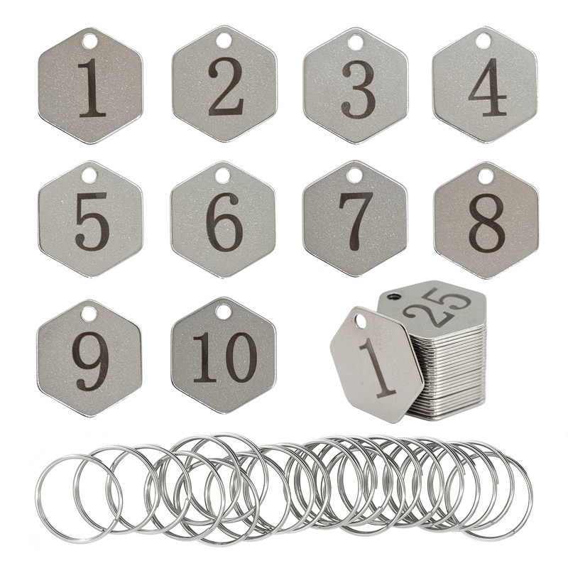 StayMax 25 x 16mm Stainless Steel Hexagonal Stamping Blank Number Plates (1-25)