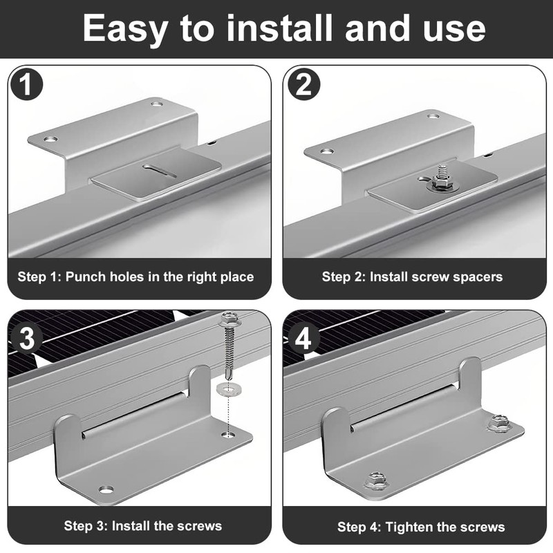 The solar panel mounting kit provides better support for the solar panel. Let the solar panel have better stability. Solar brackets are ideal accessories for attaching solar panels