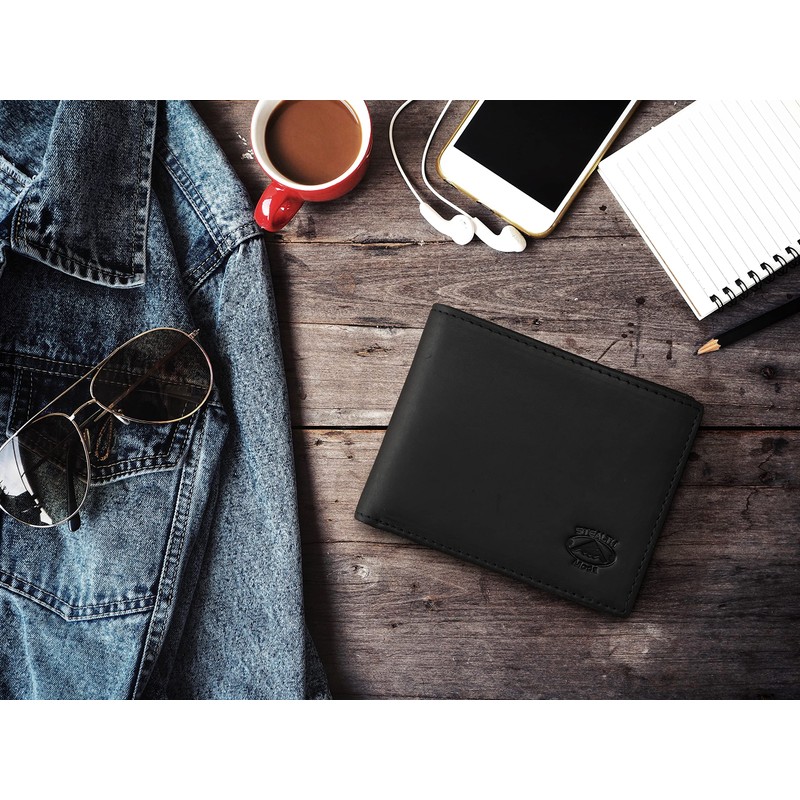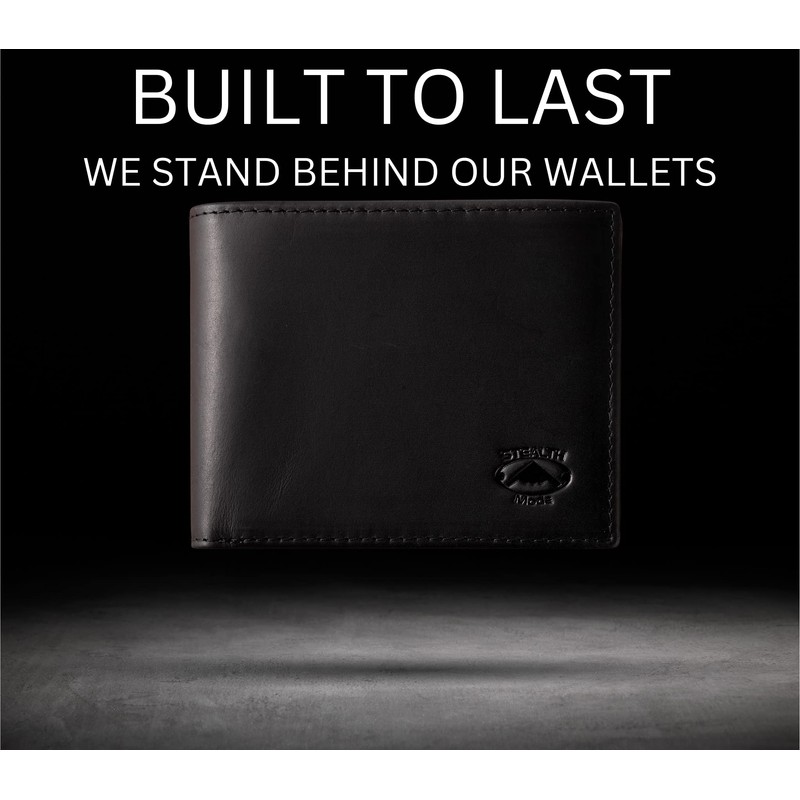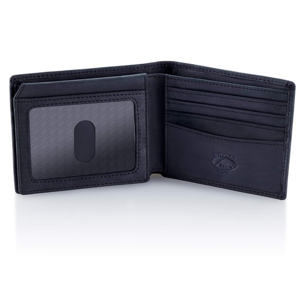 Stealth Mode Black Leather Bifold Wallet for Men With ID Window and RFID Blocking, One Size