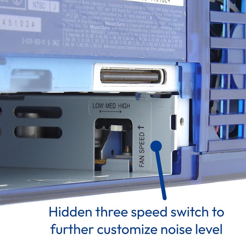 - Proper fan operation: Connects to the PS2's internal 12V power supply for full-speed performance; hidden three-speed switch allows you to further adjust noise and airflow levels to your preference