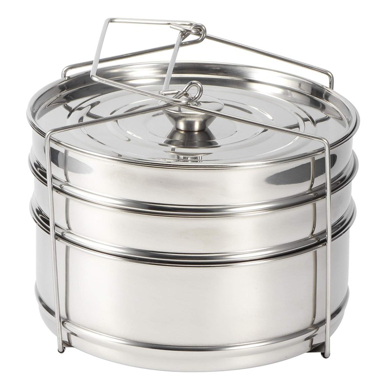 - 【large capacity】3 tier stackable pans to cook variety of food simultaneously in any pressure cooker or Pot. Great for steaming rice, vegetables, meat, fish or soup. Also It can be used as a dessert pan to make cheesecakes or make lasagna or vegetable steamer.