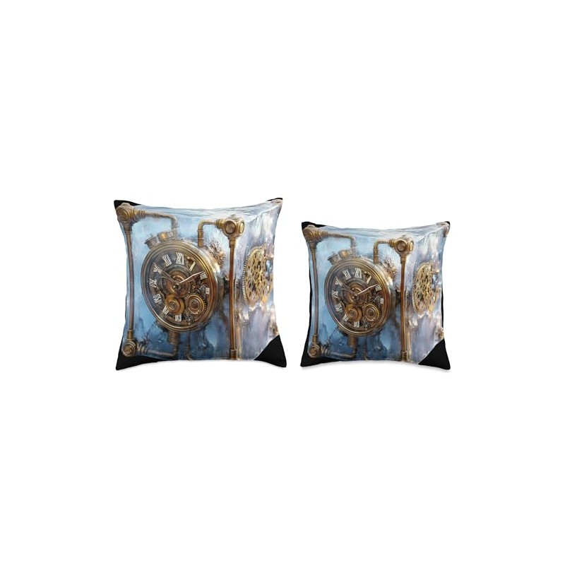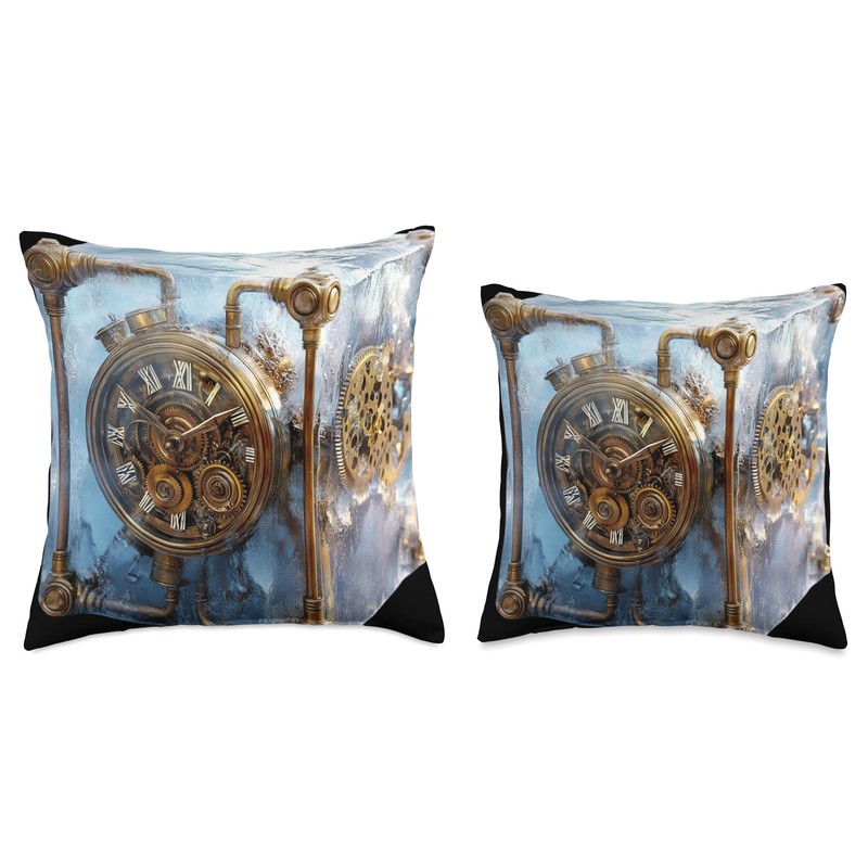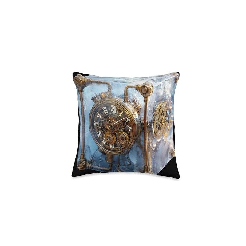 Steampunk Clock Ice Cube Mechanical Art Throw Pillow