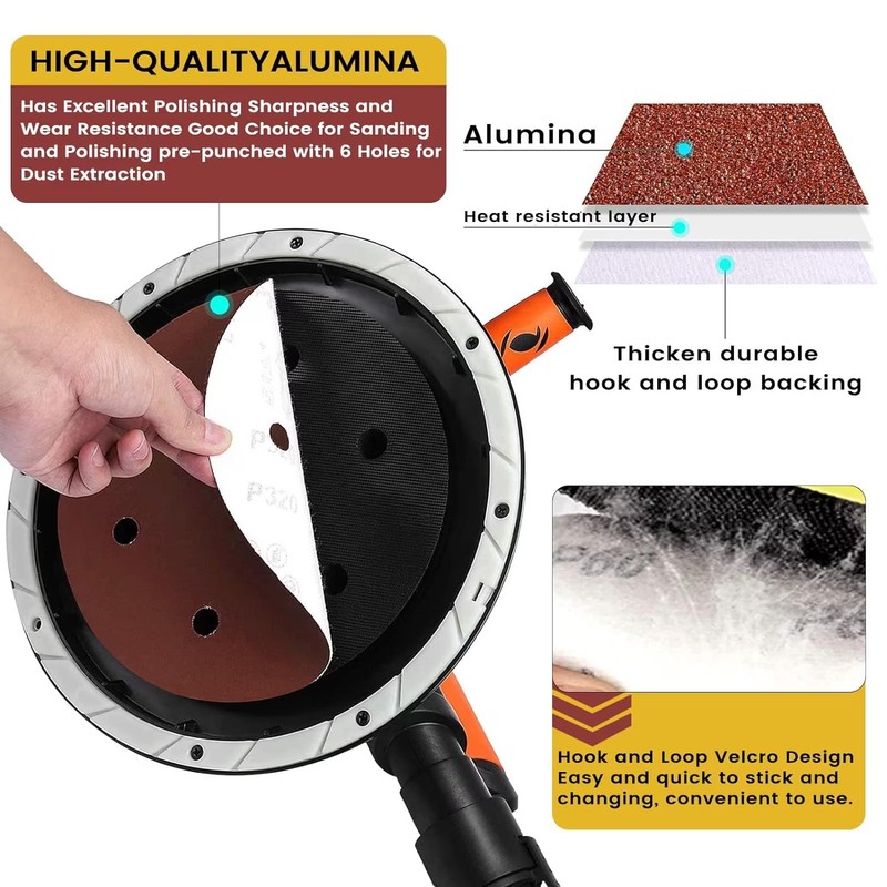 Easy to install and remove Offering fast and durable sanding save on work time and pre-punched with 6 holes for dust extraction, Greatly improve polishing lasting