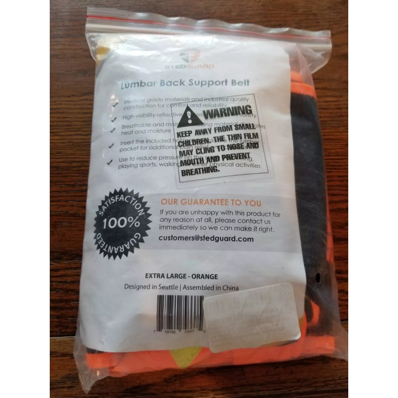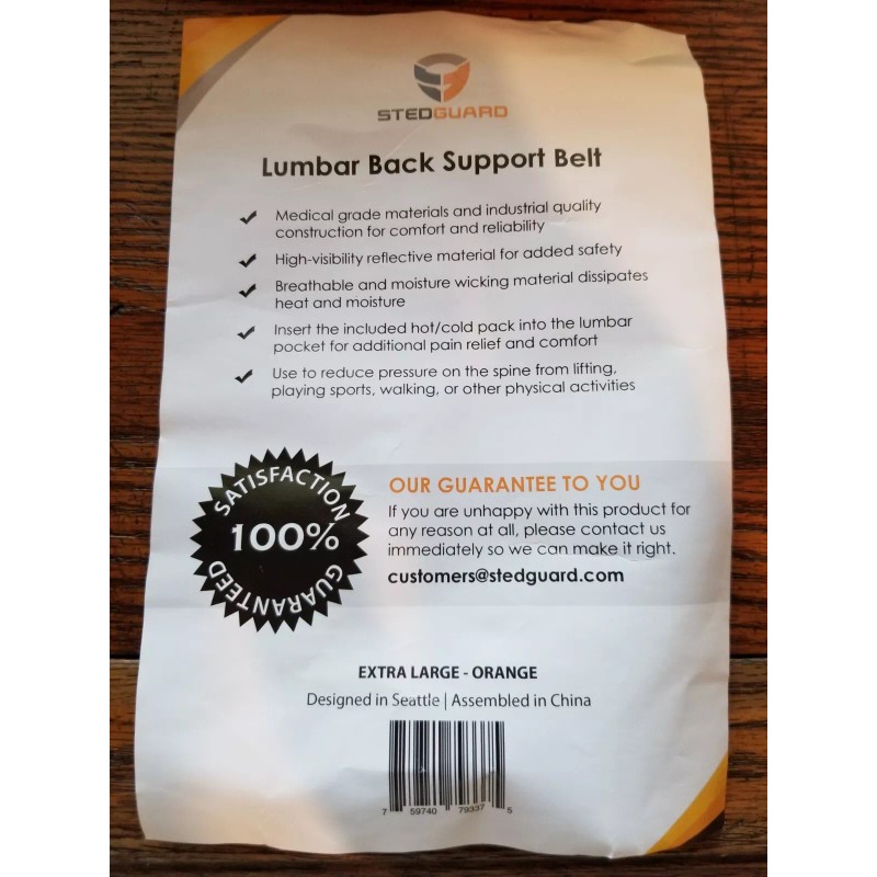 Stedguard Lumbar Back Support Belt ( xL ) W/ Hot/Cold Pack.