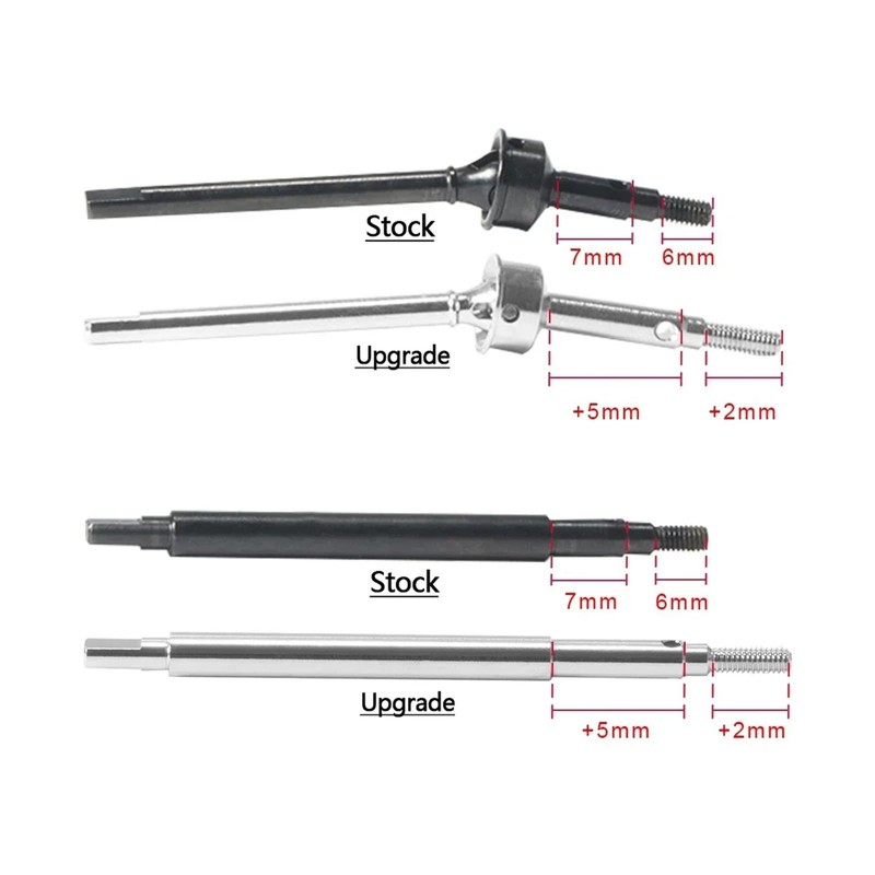 - Extended 2mm thread axle shafts to install wider wheel hex