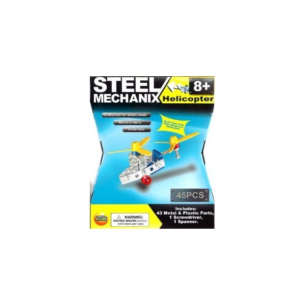 - 45 Pieces Includes: 43 Metal and Plastic Parts, 1 Screwdriver, 1 Spanner.