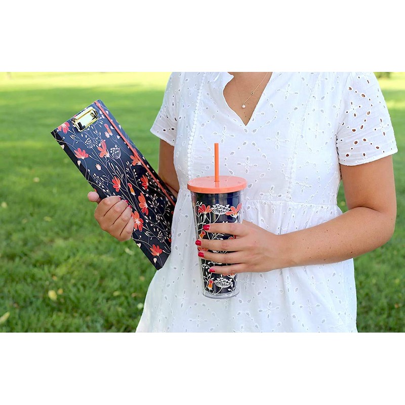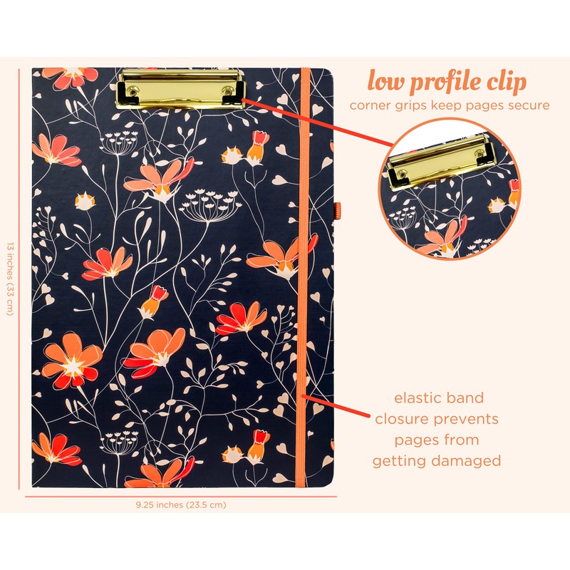 - TRENDY DESIGN: Cover has a navy and coral floral pattern with a solid navy interior for a classy, elevated look. The pretty cover and gold metal clip keeps your things neat and trendy!
