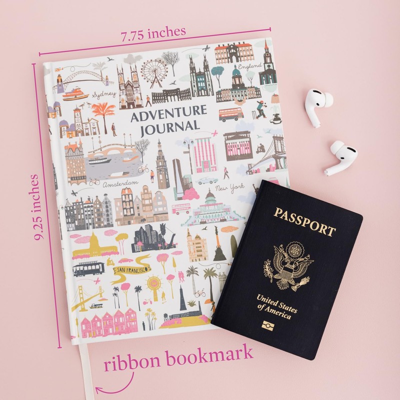 - Adventure book has a durable hardcover with a luxe textured paper cover that is printed in a colorful city design that features iconic landmarks and attractions known throughout the world