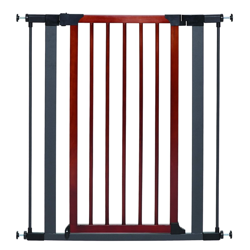 Steel Pet Gate w/ Textured Graphite Frame & Decorative Wood Door, 39H x 28-38W Inches