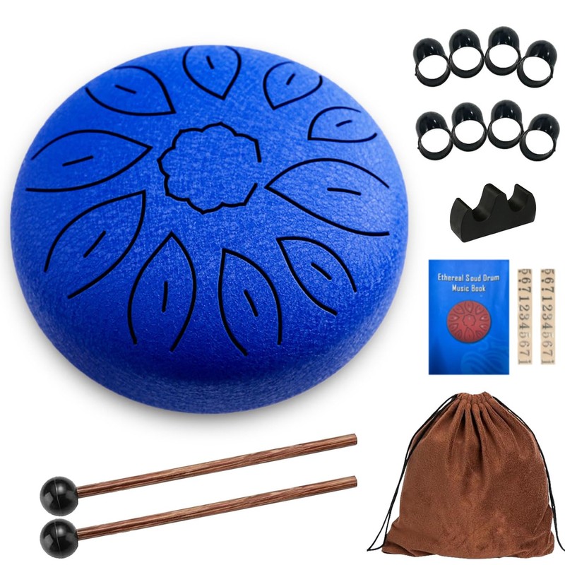 Steel Tongue Drum, Tone D Major Tongue Drum for Beginners (6 Inch 11-Tone Blue)