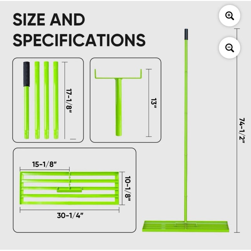 Steelite Lawn Leveling Rake 30"x10" Level Lawn Tool 72” Steel Extended Handle