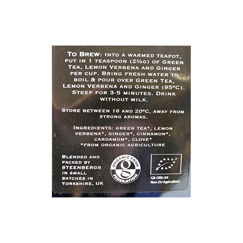 - Steenbergs Organic Green Tea with Lemon Verbena and Ginger 500g