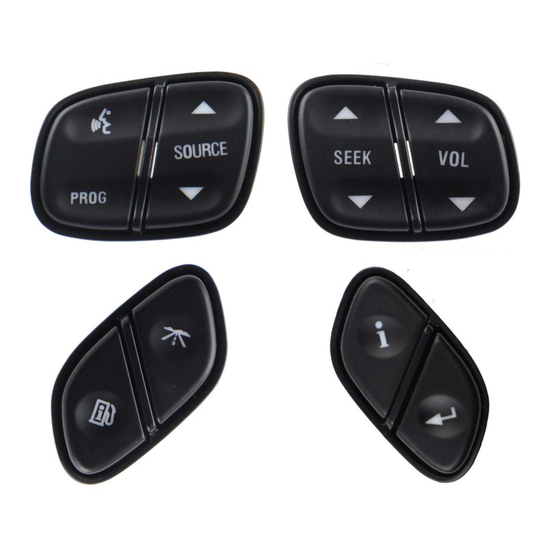 - Complete Set Switch Buttons Include: Includes a set of four buttons: 1x Seek & Volume control, 1x Program and Source switch, 1x Personalized Setting button and 1x Fuel & Trip Info switch