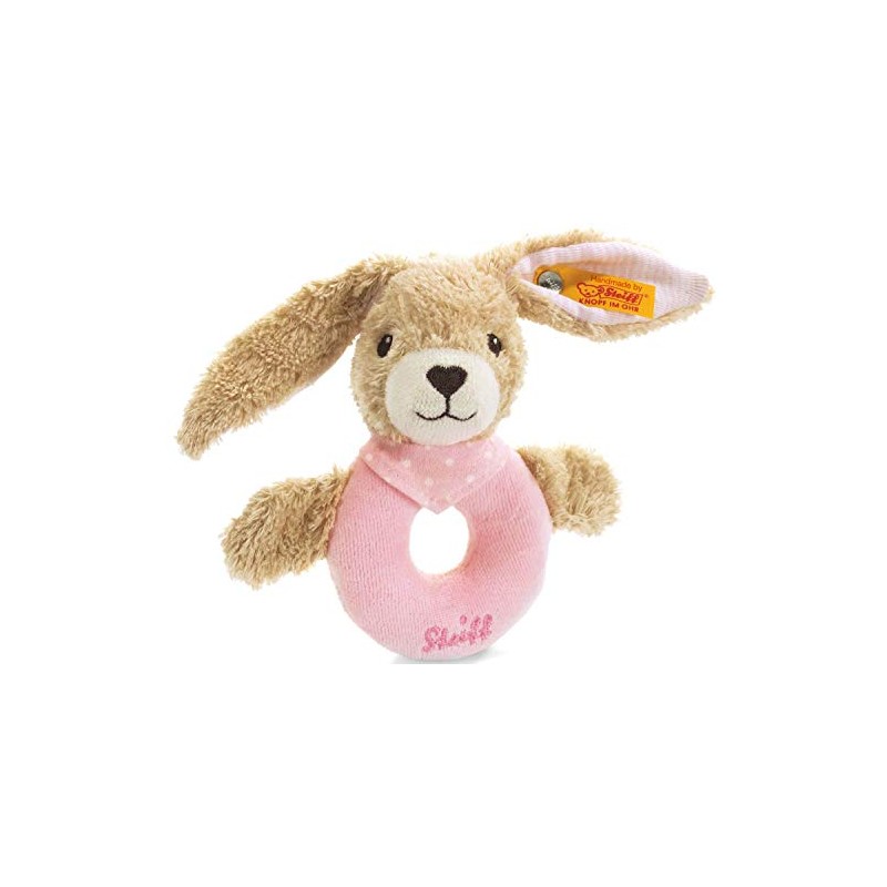 Steiff Hoppel Rabbit Grip Toy with Rattle (Pale Pink, 12cm)