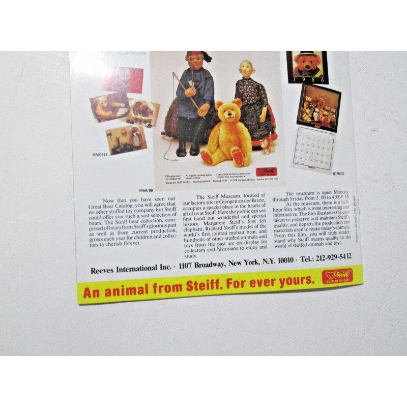 Steiff The Great Steiff Bear Catalog Button In Ear Catalog Catalogue Germany 1985 NOS