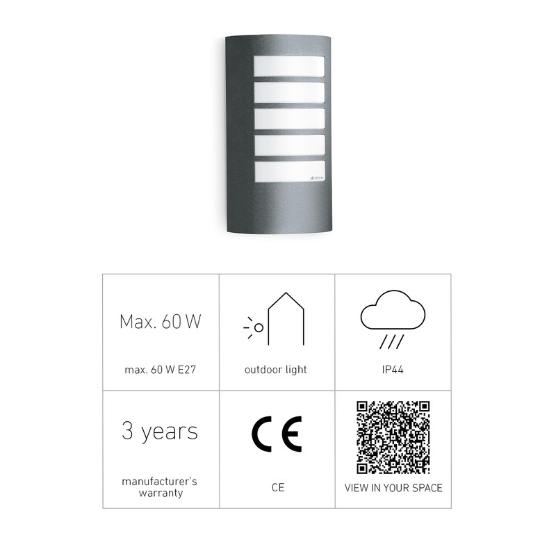 - Die Wandleuchte L 12 mit dem wetterfesten Geh?use aus Aluminium (IP44) und den markanten Querstreben verbindet ein modernes Design mit bekannter Steinel Lichttechnik