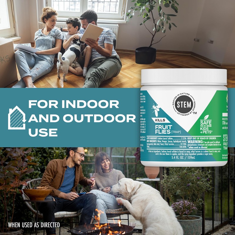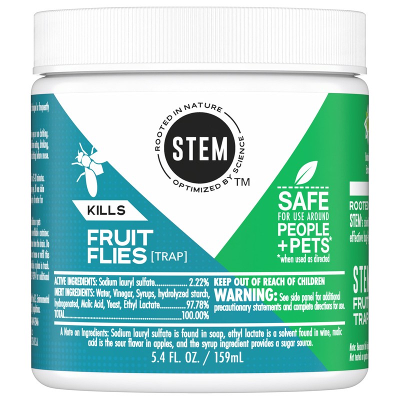 The best defense against Mother Nature is Mother Nature. Meet STEM Kills Fruit Fly Trap ? a fruit fly killer for home use made with botanical extracts that are safe for you, but deadly for bugs. STEM?s scientists decode the power of nature, scientifically optimizing it into effective bug-fighting forms. STEM indoor fly trap attracts fruit flies and kills them. This fly insecticide was tested by entomologists and is safe for use around people and pets (when used as directed). It has no added dye, fragrance, or harsh chemical odors. Starts working immediately and lasts up to 21 days. STEM helps protect your family. Rooted in Nature, Optimized by Science.