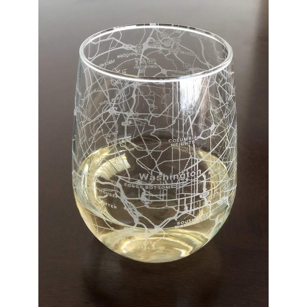 Stemless 17oz Wine Glass Urban City Map Washington DC