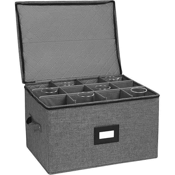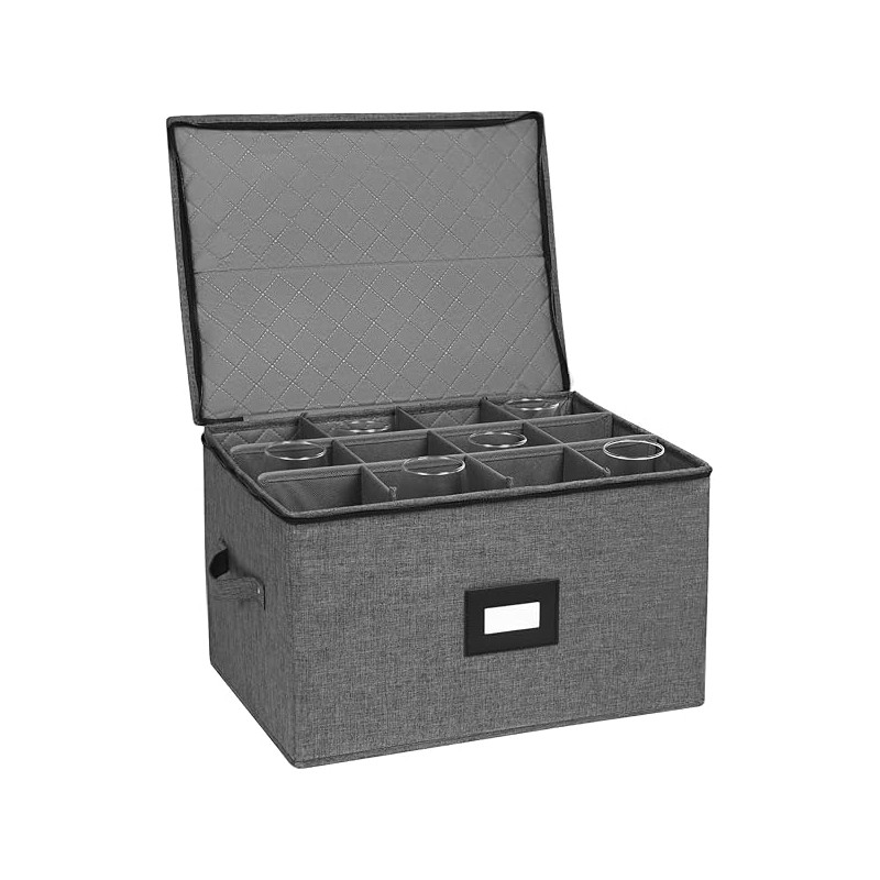 Stemware Storage Cases, Wine Glass Storage Box Containers with Dividers for Glassware Crystal Storage and Transport, Hard Shell and Stackable (Black)