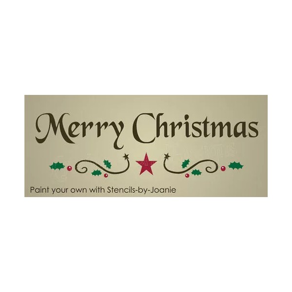 (1) New Stencil #C8B ~ Merry Christmas with fancy Holly Berry and Star scroll design - paint your own Seasonal Holiday home decor and popular primitive craft signs with reusable Stencils-by-Joanie