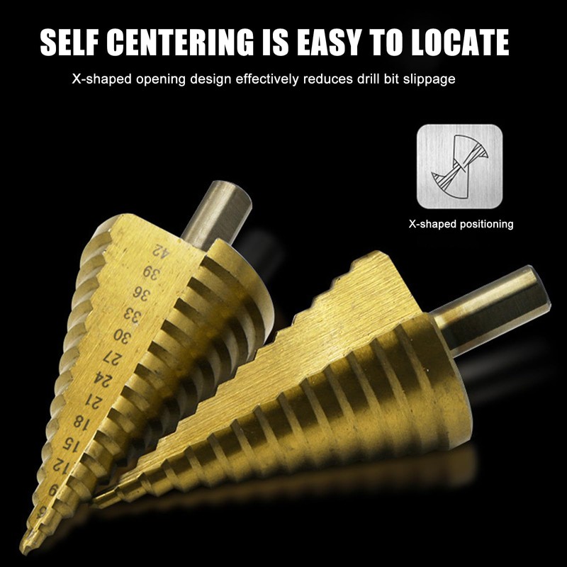 Step Drill, Taper Drill, Metal Drill, Step Drill Set, Step Drill Wood, 4-42 mm, HSS Taper Hole Drill, Spiral Groove Peeling Drill Bit for Wood, Plastic, Metal