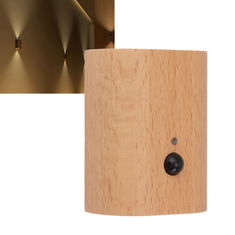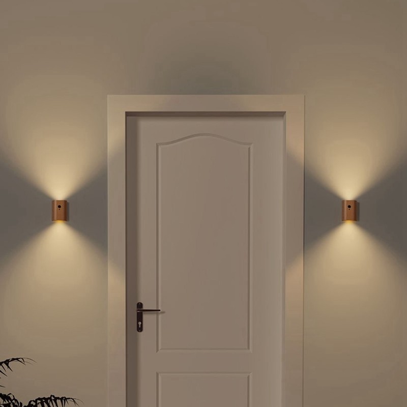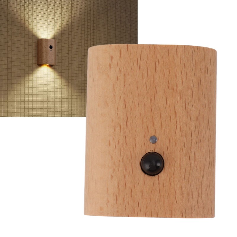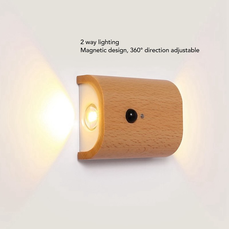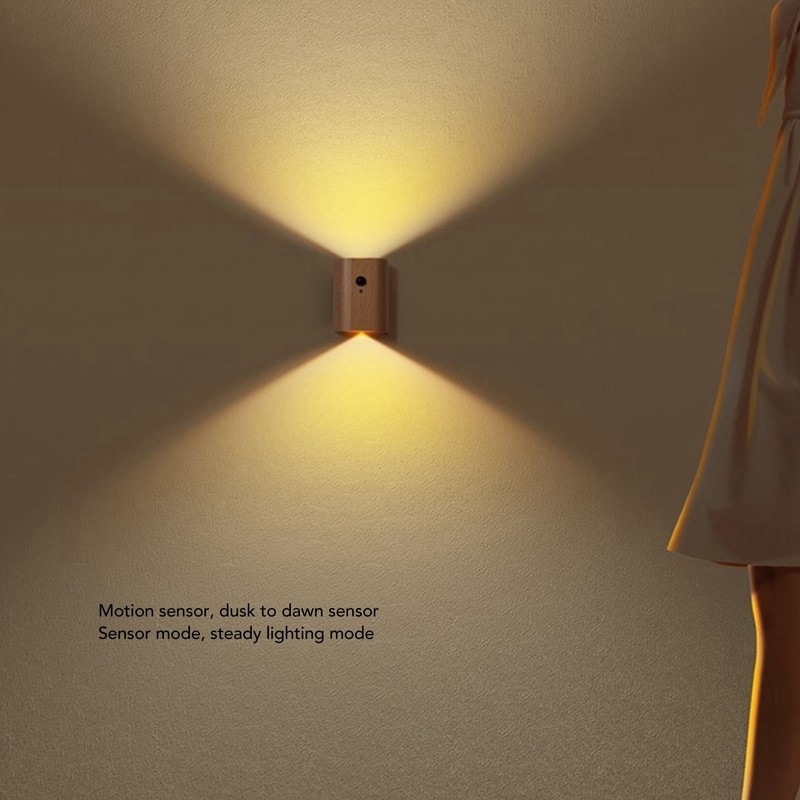 Step Light Wall Sconce Beech Wood Motion Dusk to Dawn Sensor Magnet 2 Side Lighting USB Rechargeable LED Wall Light