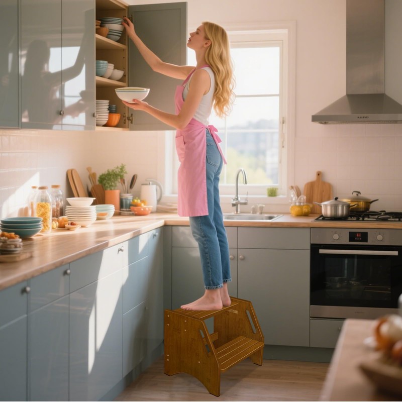 - 3. Easy Maintenance:Made from durable bamboo step stool material with a smooth, waterproof, eco-friendly water-based finish. Resists stains and splinters – simply wipe clean with a damp cloth.