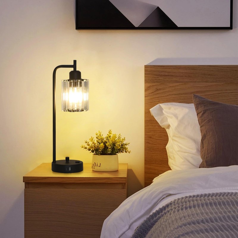 - 【ELEGANT TABLE LAMPS SET OF 2】As the epitome of vintage elegance, this crystal lamp designed to infuse your space with charm and functionality. This bedside lamps features a classic design with clear crystal shades, paired with a black lamp pole and base, blending modern industrial aesthetics. This black lamp is perfect for minimalist or bohemian home styles and will be the focal point of your home and is both cozy and beautiful.