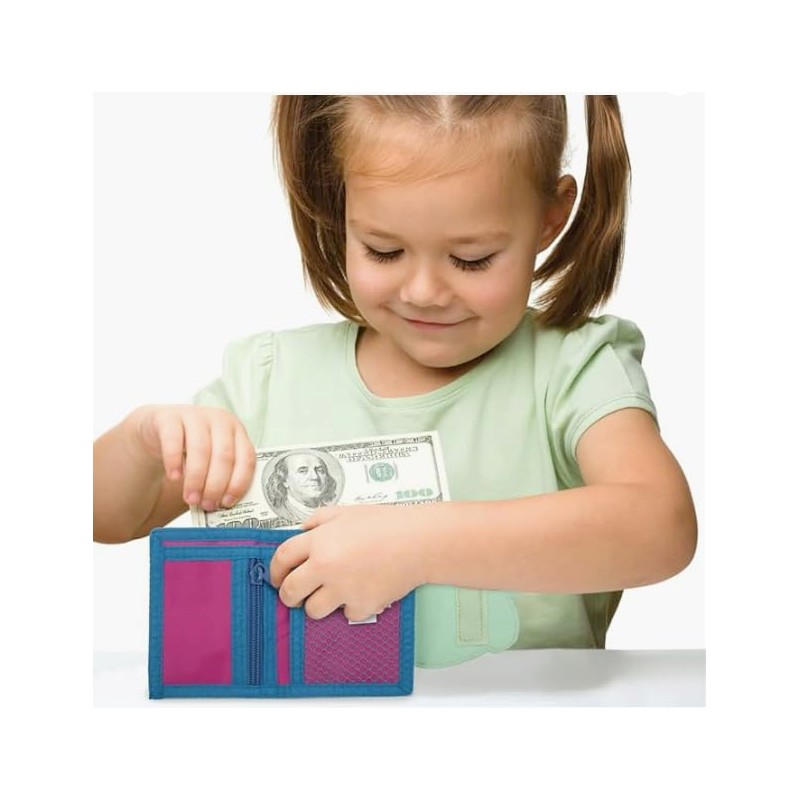 - SPECIAL FEATURES: Appliques, screen printing, and glitter details, add texture and character to these super cute wallets. Multiple inner pockets and a hook-and-loop closure give kids a great place to stash their cash. It even has a zippered coin purse inside for all their extra change!
