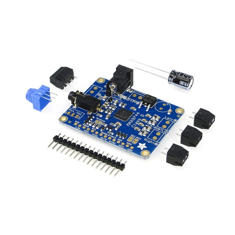 - We like the MAX9744 amplifier at the heart of this board because its very easy to use, but it also has both analog and digital volume control capability. Use a single 1K? pot (we include one) to adjust volume analog-style. Or hook it up to your favorite microcontroller and send I2C commands to set 64-steps of volume amplification.