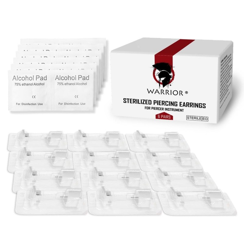 Sterile Earrings for Piercing Gun Warrior Disposable Earring Makers with Alcohol Swabs, Easy to Use at Home, Suitable for Women and Men for Ear and Helix Pack of 12