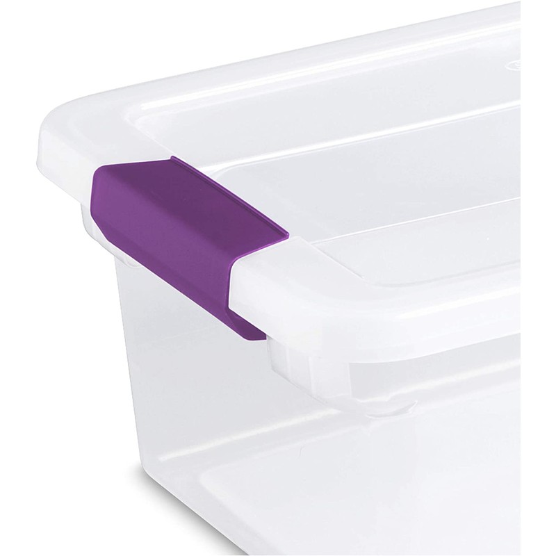 Sterilite 17531712 15 Quart/14 Liter ClearView Latch Box, Clear with Sweet Plum Latches, 12-Pack