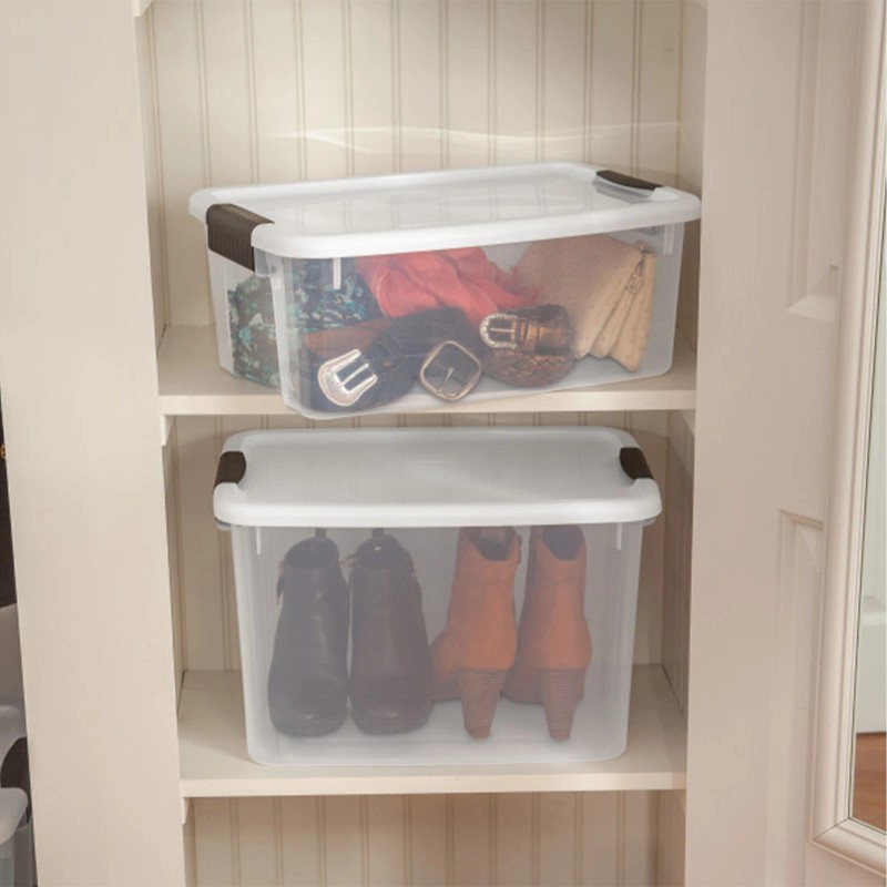 Sterilite 18 Qt Clear Plastic Stackable Storage Bin w/ White Latch Lid, 24 Pack