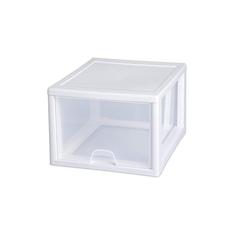 Sterilite 27 Quart Durable Plastic Single Modular Stacking Storage Drawer Container with Clear Bin and White Frame for Household Organization