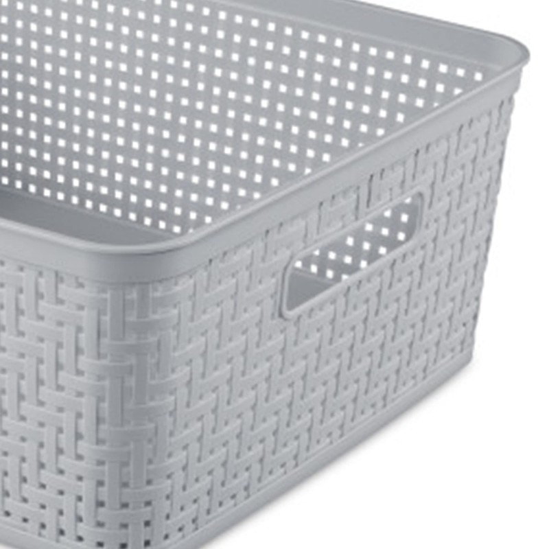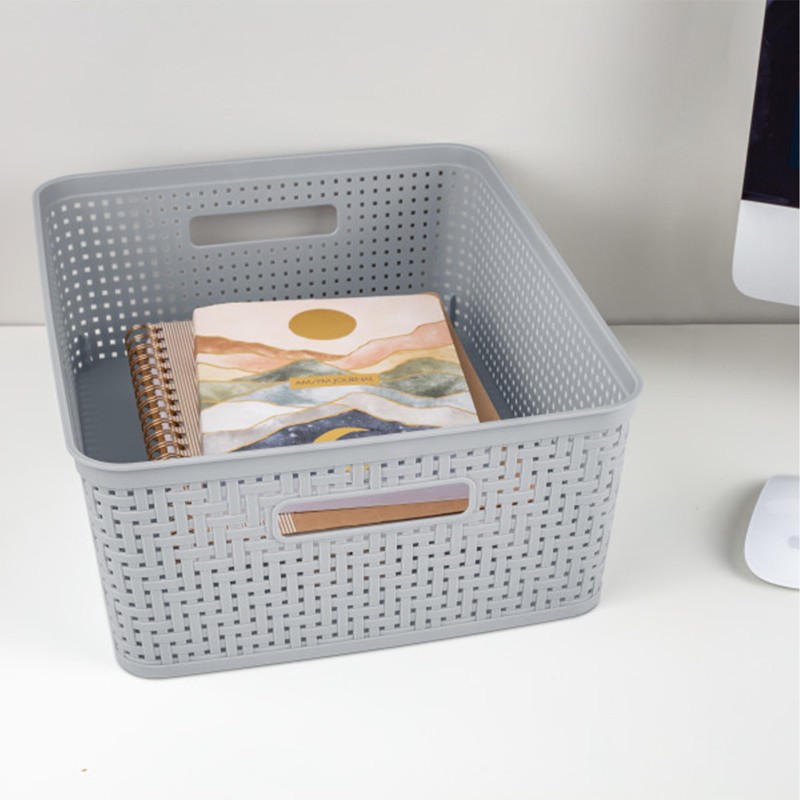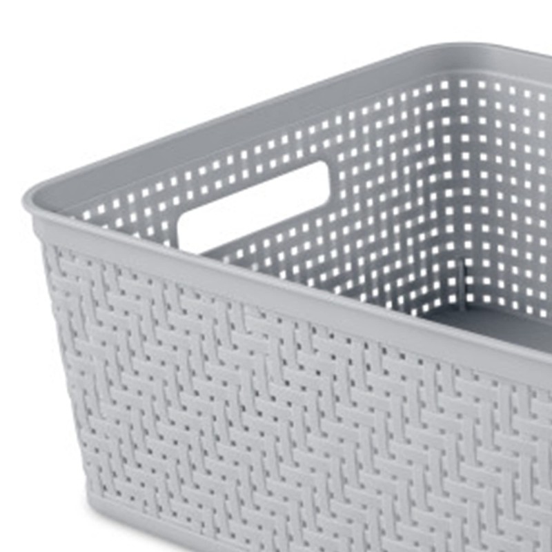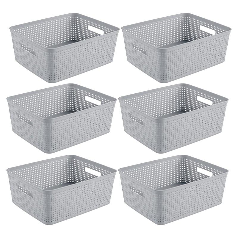 - Set of (6) rectangular short baskets, the ultimate storage solution for controlling clutter in busy areas of the home; Color: Cement