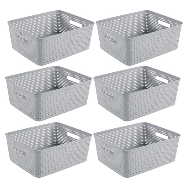 Sterilite 6 Pack Plastic Storage Bin Organization Containers, Short Baskets, Cement