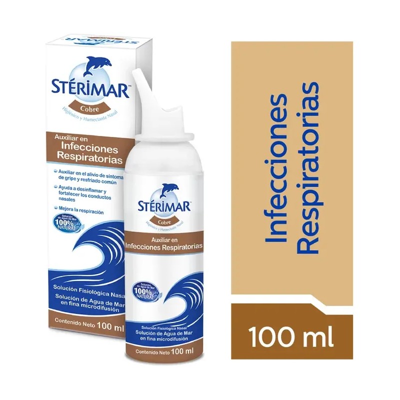 Stérimar Cobre Lubricante Nasal 100% Natural con Solución de Agua de Mar y Cobre Auxiliar en Infecciones Respiratorias para Toda la Familia 100 ml