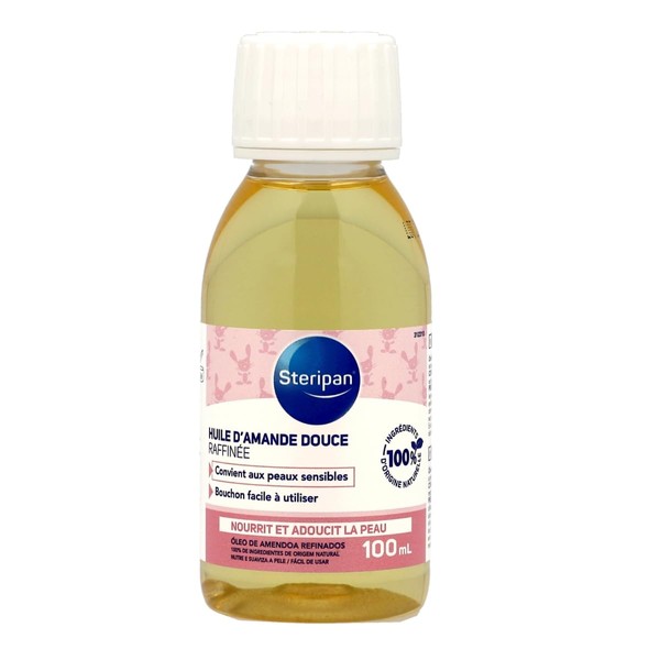 - Oil d'MANDE DOUCE Steripan : L'huile almond doux Steripan nourt, doux et doux la peau Suitable for sensitive skin. Steripan sweet almond oil contains 100% ingredients of natural origin.