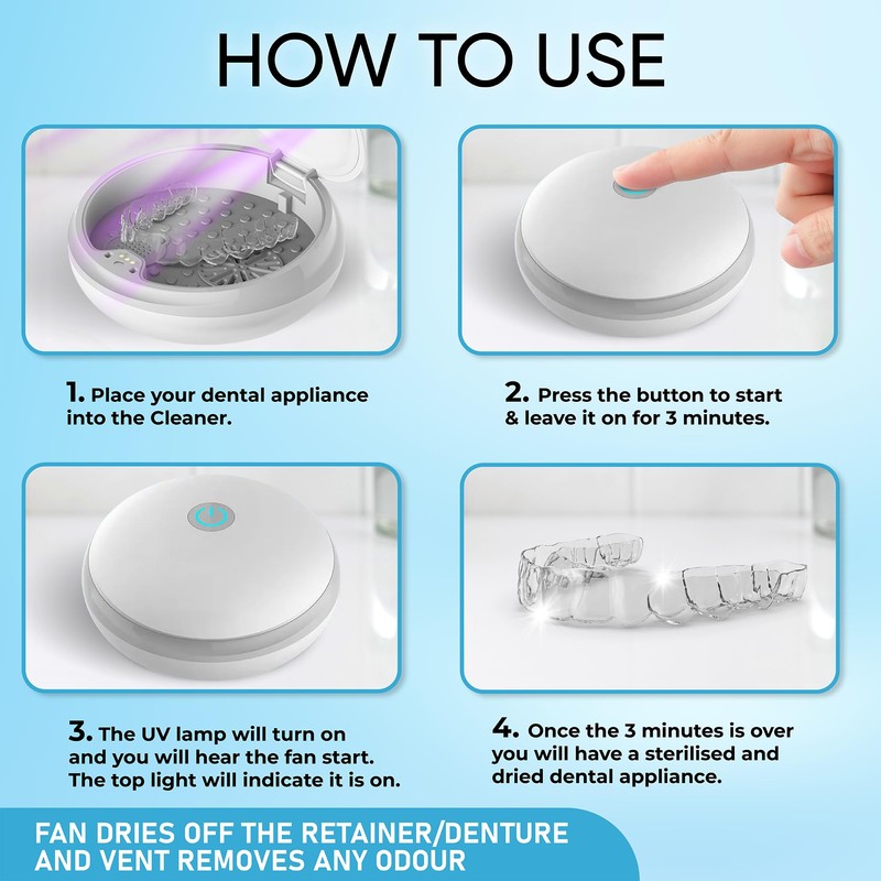 - Compatibility - Retainers, Dentures, Gumsheilds, Invisalign, Clear Aligners, Night Gaurds & Any Dental Appliance.