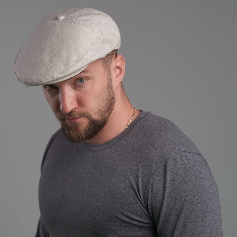 Sterkowski 100% Linen, Super Light, 5 Panel, Applejack, Summer Flat Cap - 62 cm = XXL = UK 7 5/8