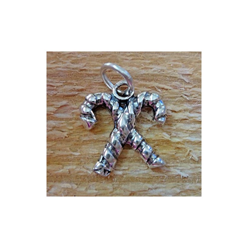 Sterling Silver 17x15mm Double Candy Cane Holiday Christmas Charm concave back
